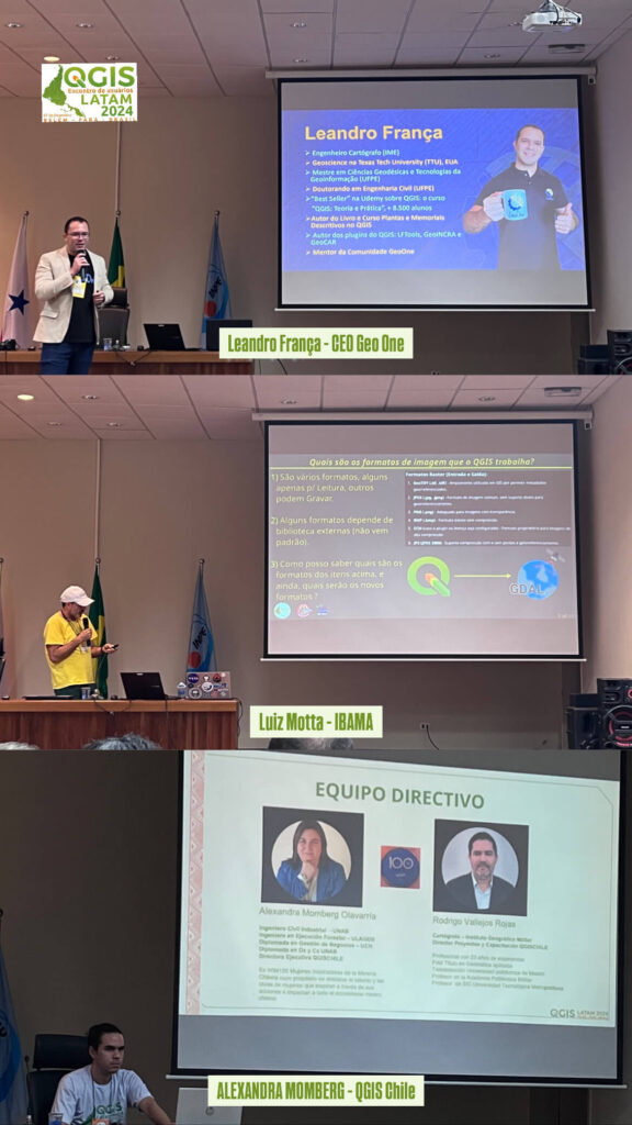 O QGIS LATAM 2024 reuniu palestrantes de renome na área de geotecnologias, que compartilharam avanços, estudos de caso e inovações no uso do software QGIS. Entre os destaques da programação estavam: